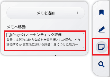 2. In the “Memo” window, click the “メモを追加/Add Memo” button to make a memo about the content of the slide.